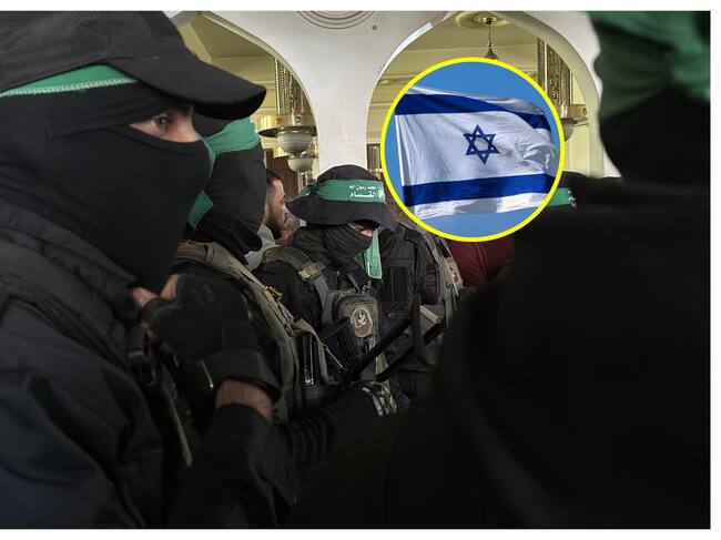 Hamás y bandera de Israel. Foto: Khames Alrefi/Anadolu via Getty Images.