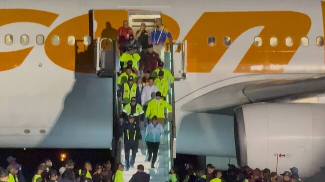 Vestidos la mayoría con uniformes grises, venían esposados en el avión que los llevó de vuelta a Venezuela, donde fueron recibidos bajo un operativo de seguridad.