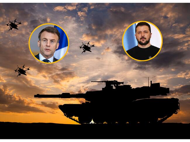 Apoyo militar, Emmanuel Macron y Volodímir Zelenski. Foto: Anton Petrus vía Getty images.
