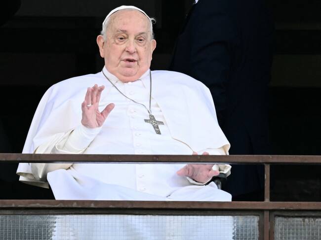 El papa Francisco saluda desde el hospital Gemelli del que fue dado de alto. FOTO: FILIPPO MONTEFORTE/AFP via Getty Images / FILIPPO MONTEFORTE
