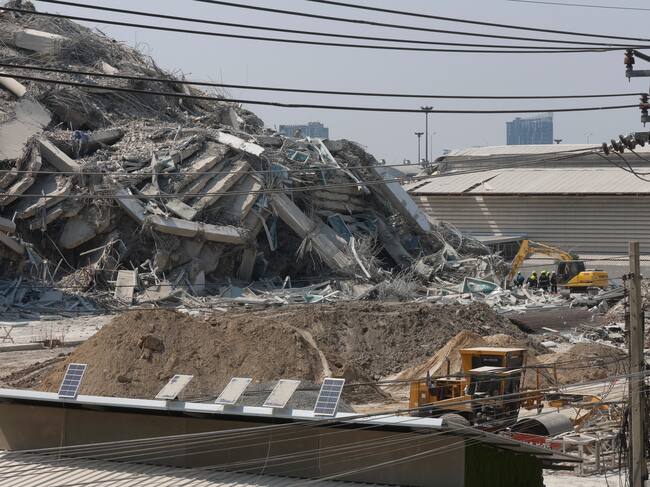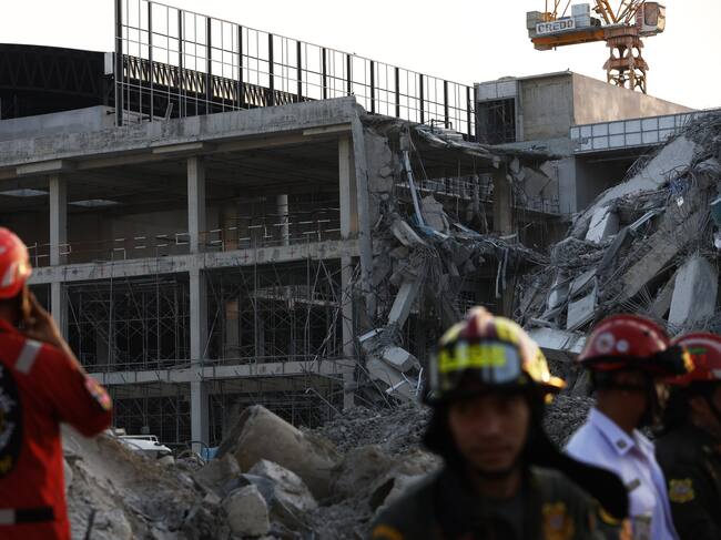 BANGKOK (Thailand), 28/03/2025.- A view of a collapsed building after an earthquake in Bangkok, Thailand, 28 March 2025. A 7.7-magnitude earthquake struck Myanmar, according to the United States Geological Survey (USGS), with tremors felt in neighboring Thailand. (Terremoto/sismo, Birmania, Tailandia, Estados Unidos) EFE/EPA/NARONG SANGNAK / NARONG SANGNAK
