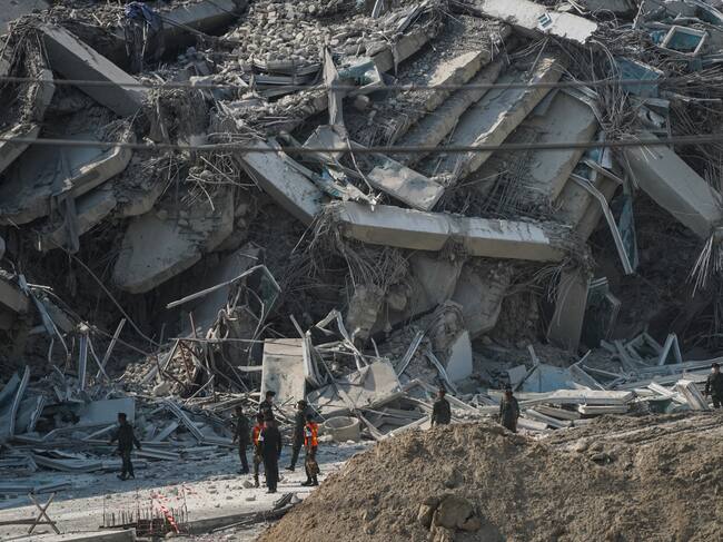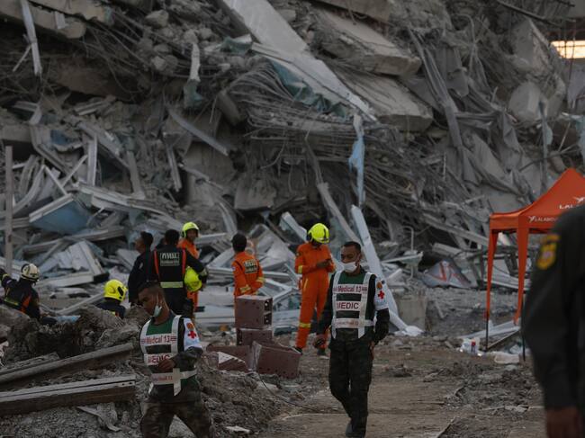 Equipos de rescate tras terremtoto de magnitud 7.7 en Birmania. FOTO: EFE/EPA/RUNGROJ YONGRIT / RUNGROJ YONGRIT (EFE)