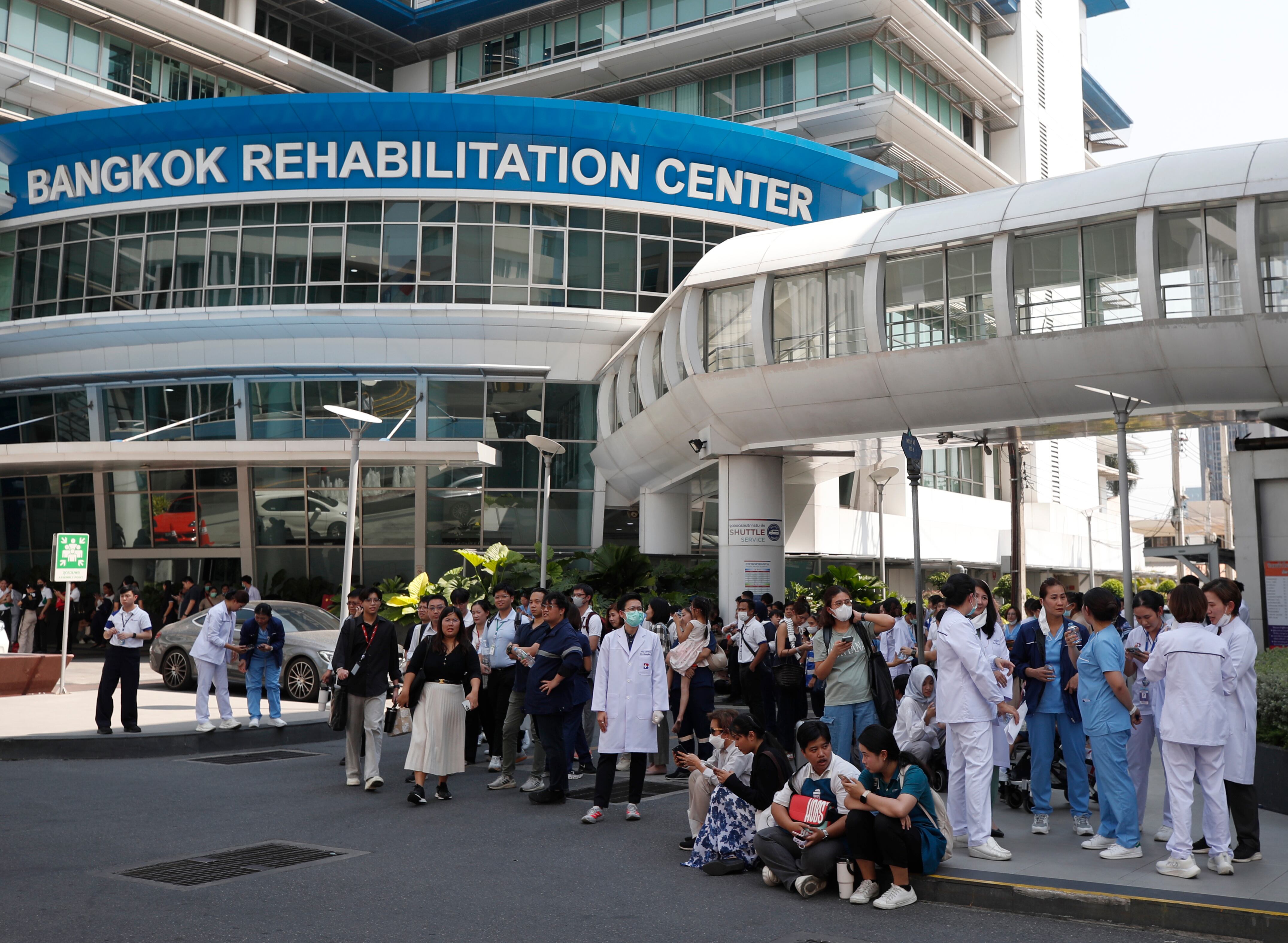 Bangkok (Thailand), 28/03/2025.- Medics and people are evacuated after an earthquake, at a hospital in Bangkok, Thailand, 28 March 2025. A 7.7-magnitude earthquake struck Myanmar, according to the United States Geological Survey (USGS), with tremors felt in neighboring Thailand. (Terremoto/sismo, Birmania, Tailandia, Estados Unidos) EFE/EPA/RUNGROJ YONGRIT / RUNGROJ YONGRIT