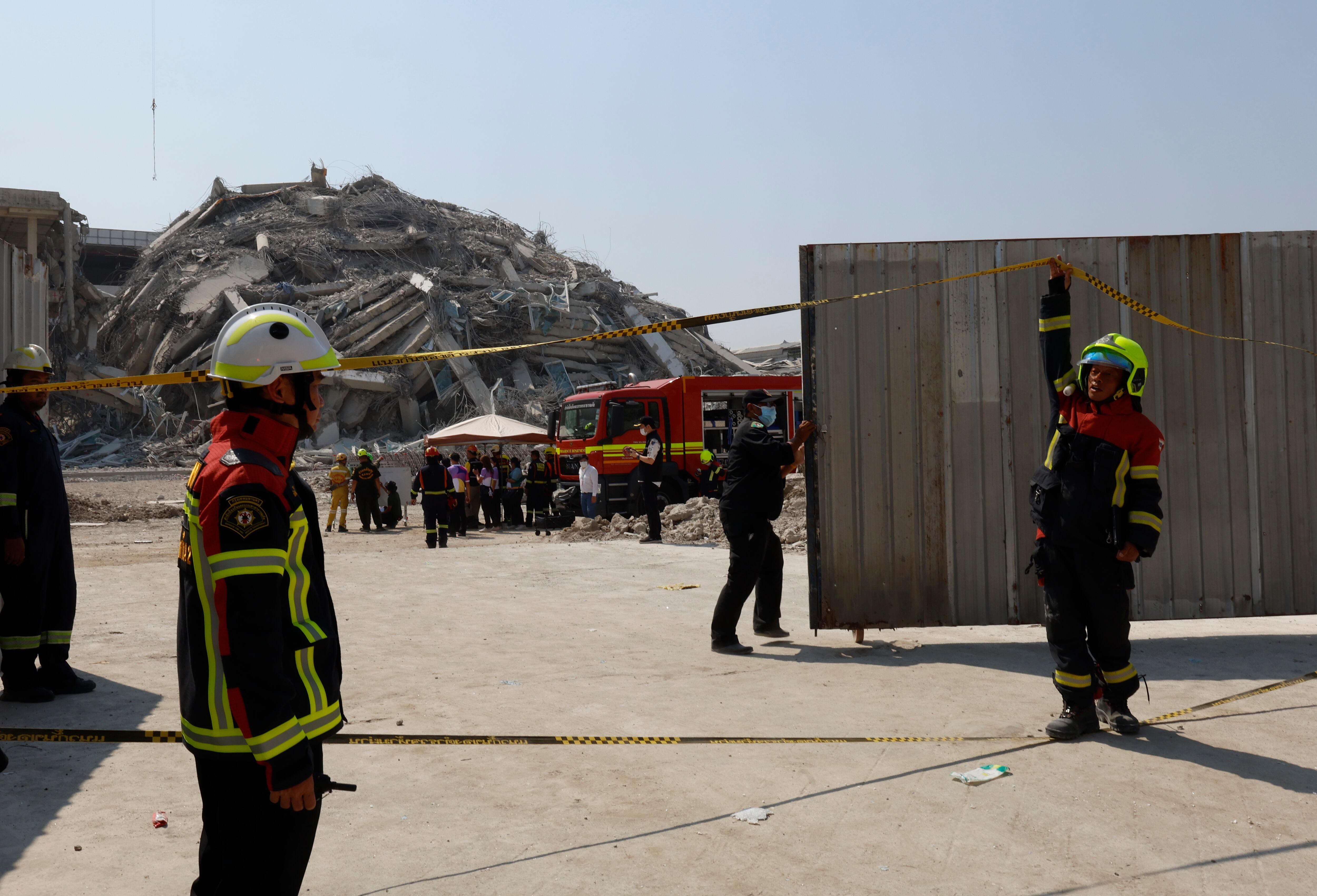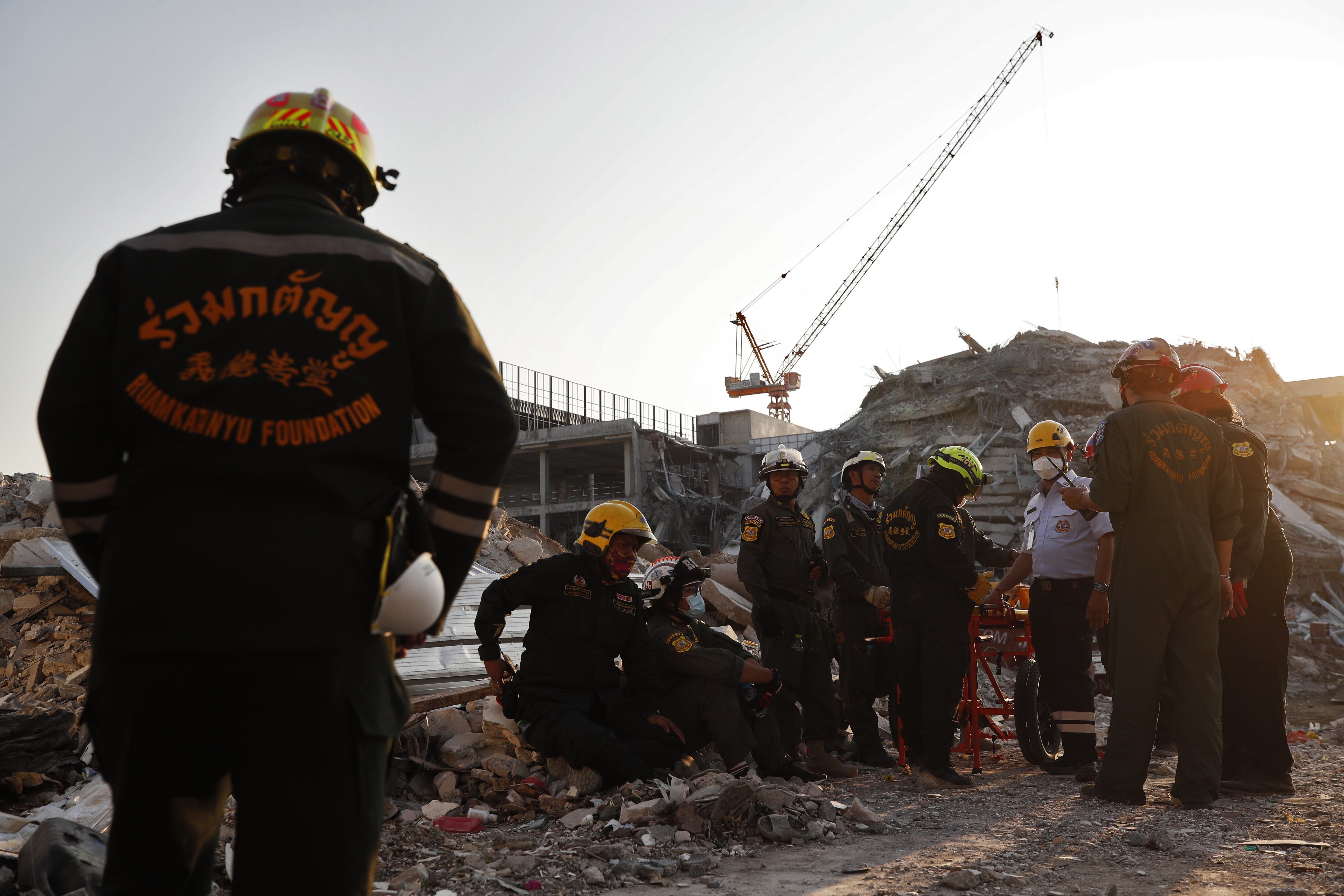 Bangkok (Thailand), 28/03/2025.- Rescue workers search for survivors at the site of a collapsed building following an earthquake in Bangkok, Thailand, 28 March 2025. According to the National Institute for Emergency Medicine, 70 construction workers are missing at the site following a 7.7-magnitude earthquake that struck Myanmar and caused tremors that could be felt in neighboring Thailand. (Terremoto/sismo, Birmania, Tailandia) EFE/EPA/RUNGROJ YONGRIT / RUNGROJ YONGRIT
