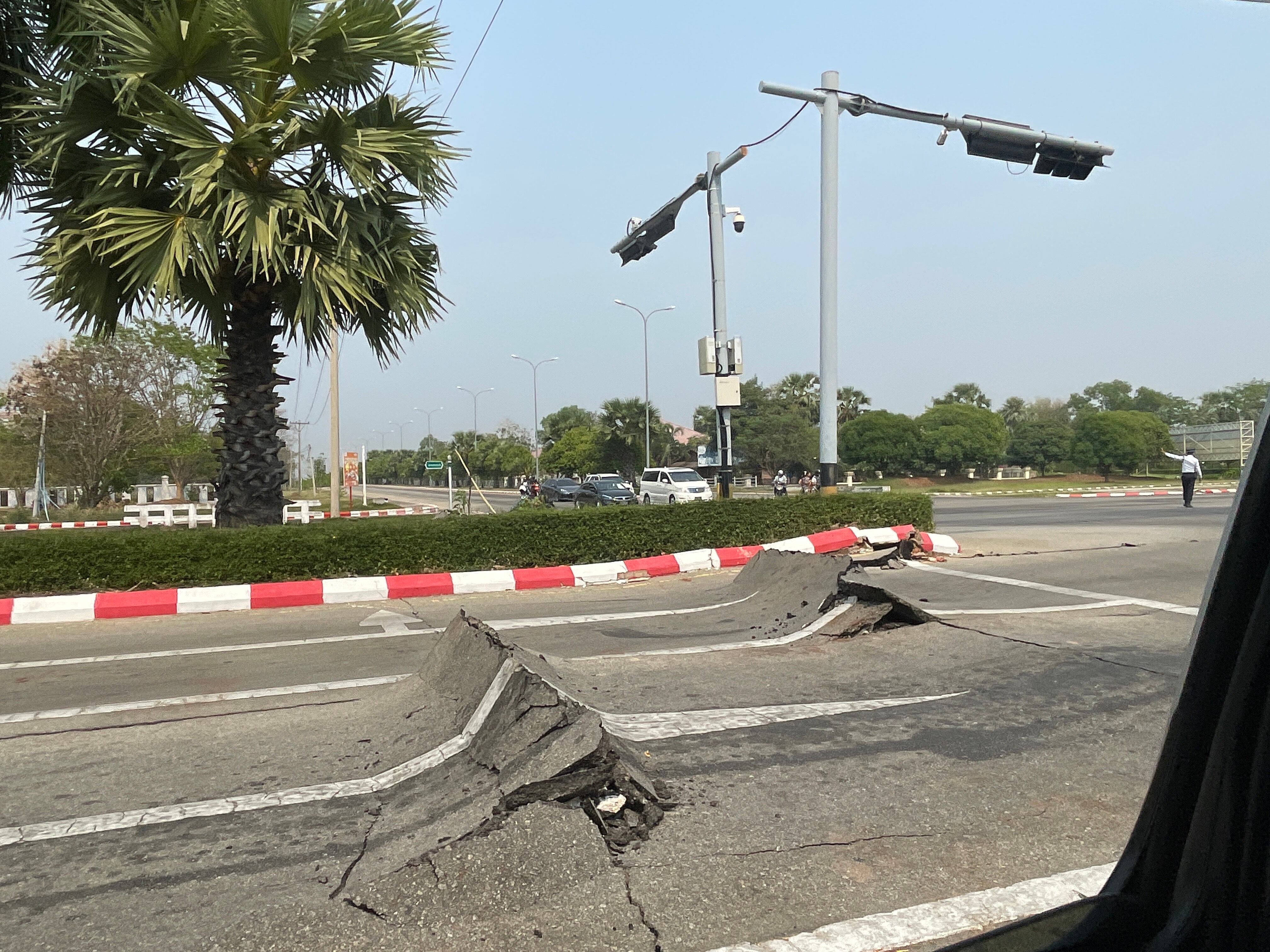 Naypyidaw (Myanmar), 28/03/2025.- A view of a damaged road on the Naypyidaw-Yangon highway after an earthquake, in Naypyidaw, Myanmar, 28 March 2025. A 7.7-magnitude earthquake struck Myanmar, according to the United States Geological Survey (USGS), with tremors felt in neighboring countries (Terremoto/sismo, Birmania, Estados Unidos) EFE/EPA/NYEIN CHAN NAING / NYEIN CHAN NAING