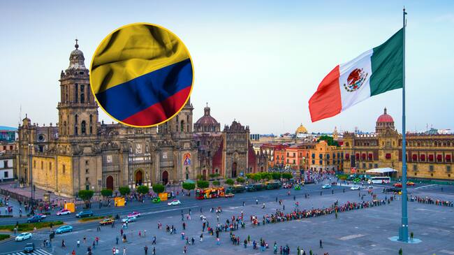 Collage de la bandera de Colombia y el zócalo en Ciudad de México. Foto: Getty Images / Manuel Augusto Moreno, John Coletti