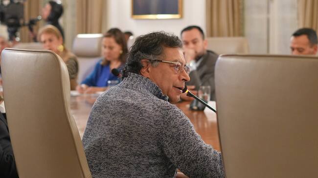 AME6346. BOGOTÁ (COLOMBIA), 03/03/2025.- Fotografía cedida por la Presidencia de Colombia del mandatario colombiano, Gustavo Petro, durante un consejo de ministros transmitido al país por televisión y redes sociales este lunes, en Bogotá (Colombia). Petro presentó un plan para la recuperación del Catatumbo que incluye la erradicación de 25.000 hectáreas de matas de coca, equivalentes a casi la mitad de los cultivos ilícitos existentes en esa región fronteriza con Venezuela y azotada por la violencia. EFE/ Presidencia de Colombia /SOLO USO EDITORIAL NO VENTAS/SOLO DISPONIBLE PARA ILUSTRAR LA NOTICIA QUE ACOMPAÑA (CRÉDITO OBLIGATORIO) / Presidencia de Colombia (EFE)