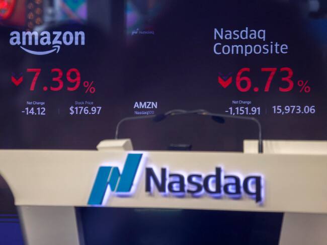 Acciones de Nasdaq y Amazon en la bolsa de Wall Street. FOTO: EFE/EPA/SARAH YENESEL / SARAH YENESEL (EFE)