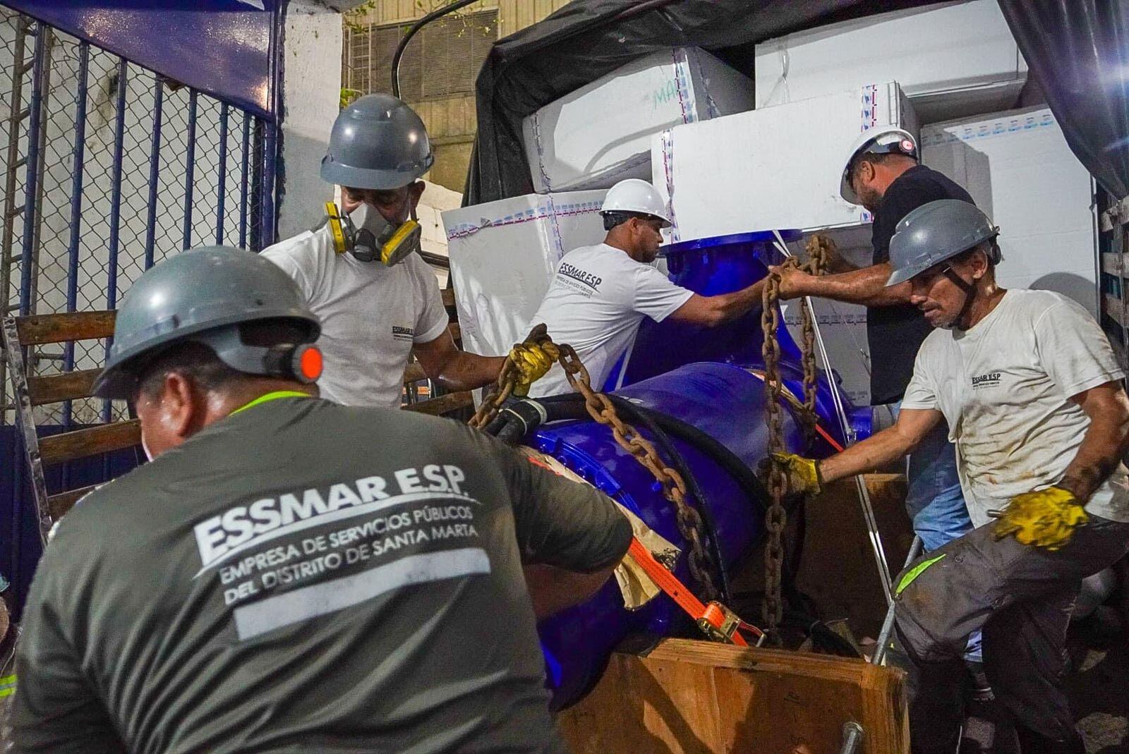 Tras cinco horas de intenso trabajo, finalizó con éxito la instalación de una bomba sumergible de alta capacidad por parte del equipo técnico especializado de la Empresa de Servicios Públicos de Santa Marta (Essmar), con la que se logró restablecer de manera segura la operación de la Estación de Bombeo de Aguas Residuales (EBAR) Norte.