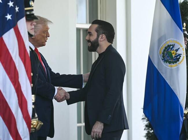 Presiente estadounidense Donald Trump y su homólogo de El Salvador, Nayib Bukele en la Casa Blanca. FOTO: BRENDAN SMIALOWSKI/AFP via Getty Images / BRENDAN SMIALOWSKI