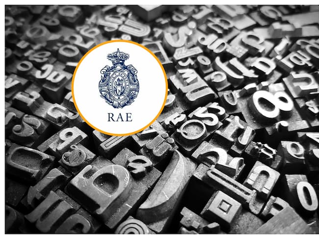 Símbolo de la RAE y letras. Foto: RAE y Busa Photography vía Getty images.