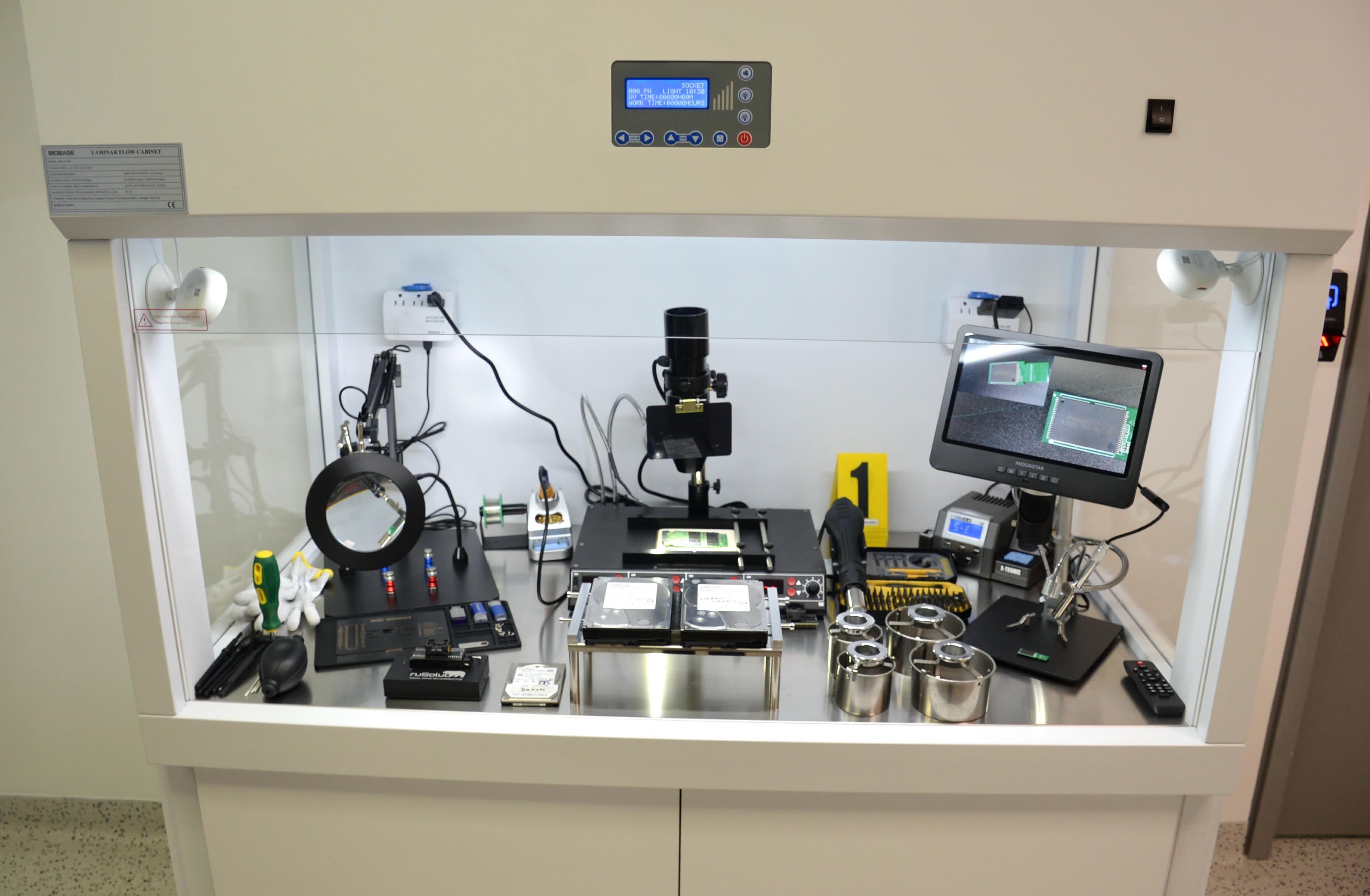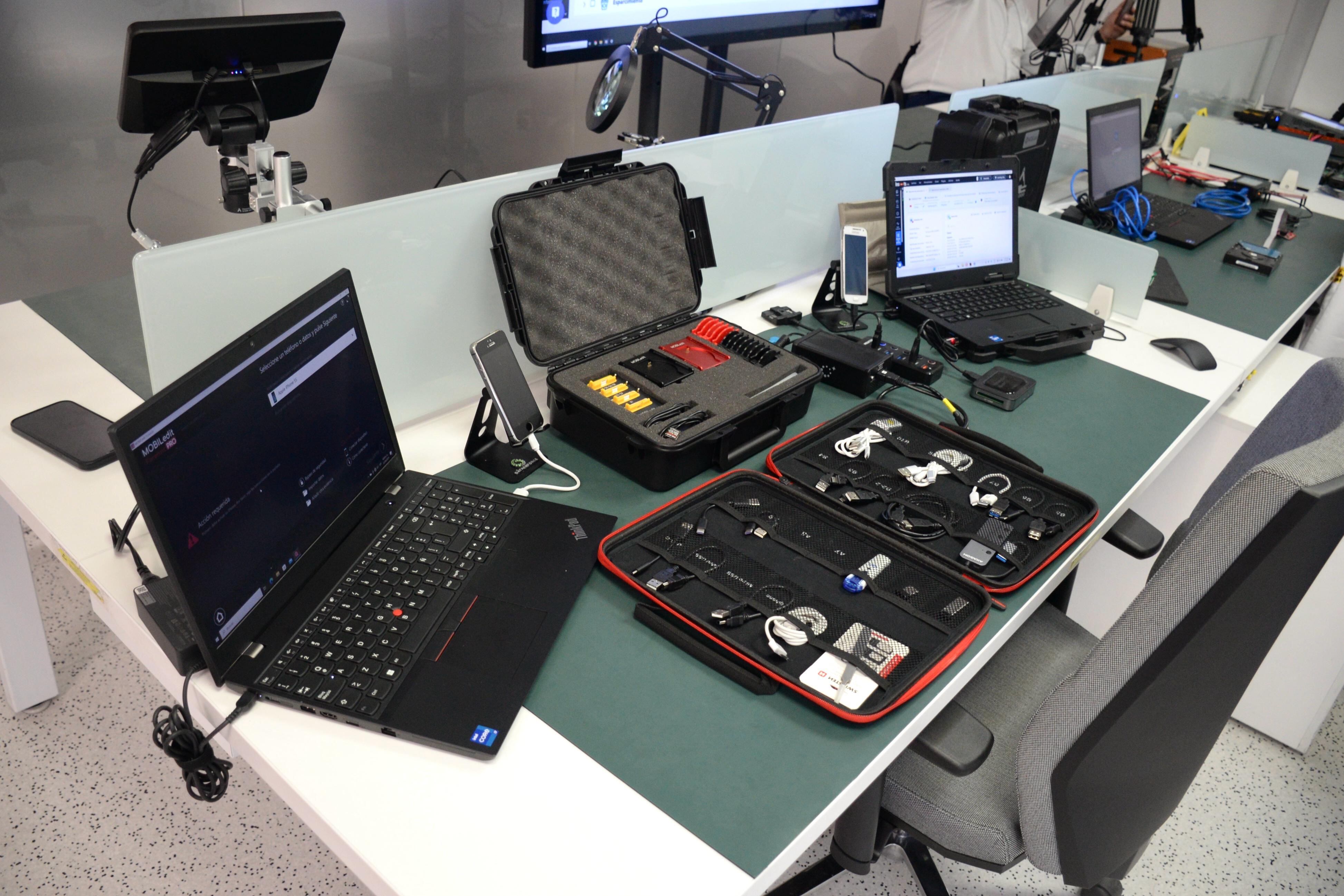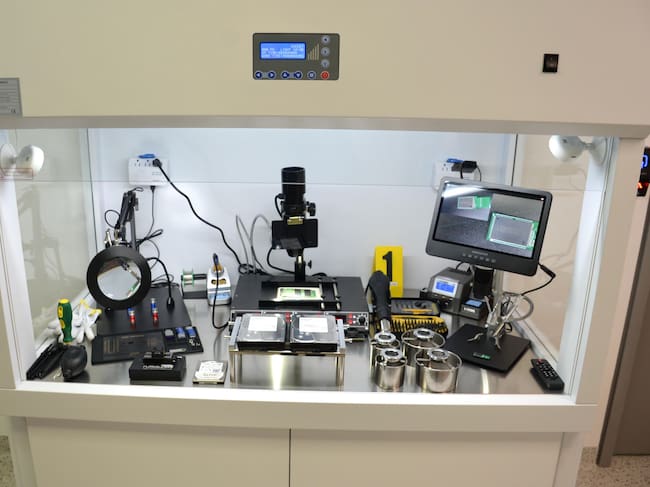 Este laboratorio usa inteligencia artificial y tiene estaciones de análisis forense de alto rendimiento, bloqueadores de escritura, kits especializados para la recuperación de datos dañados, incluyendo dispositivos flash como USB y tarjetas de memoria.