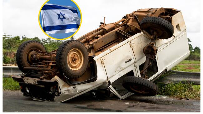 Referencia de vehículo atacado y bandera de Israel. Foto: Atlantide Phototravel y lcoccia vía Getty Images.