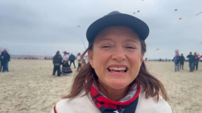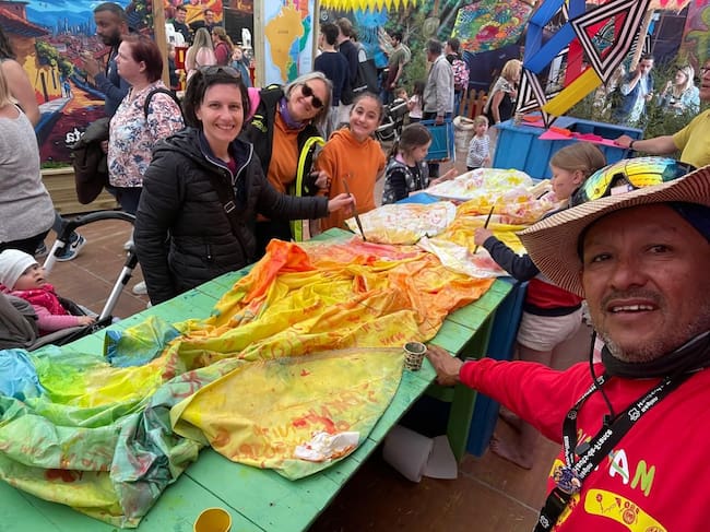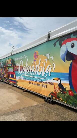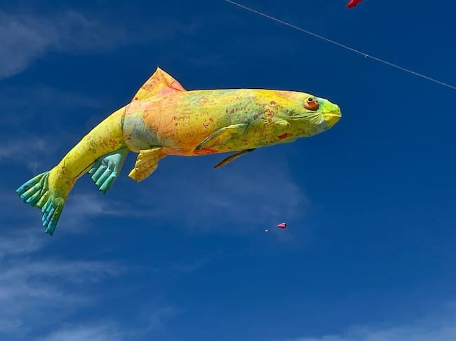 Y en esta ocasión, además de una cometa representando un tucán, también hicieron volar una trucha arcoíris inflable, coloreada por los participantes en el stand de Colombia en estos Encuentros Internacionales de Cometas en Berck-sur-Mer.
