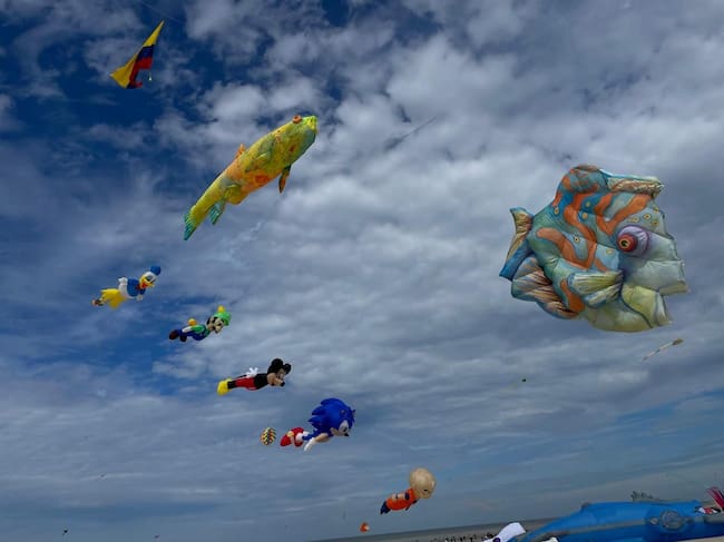 “Vinieron de diferentes regiones de Colombia, de Bogotá, de Medellín, con cometas tradicionales e inflables, como la Chiva o la Marimonda, pero también con cometas tridimensionales y participando en el terreno acrobático”, explicó a La W Nilza Tessa-Gambassi, directora del Campo de Vuelo de este evento, de nacionalidad colombiana y quien con su esposo, Roger Tessa-Gambassi, director artístico de los encuentros, se congratularon del éxito de esta edición.