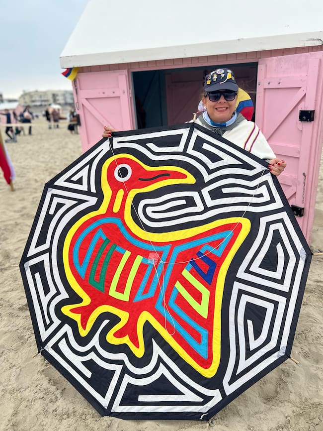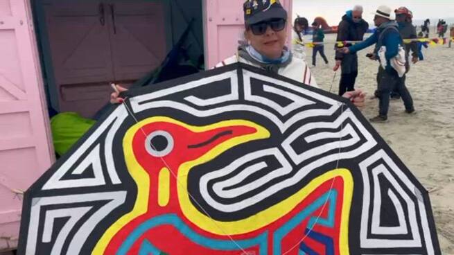 “En esta cometa está representada una de las tradiciones de nuestros indígenas de las selvas del Chocó, que es el trabajo manual de las molas”, afirmó Adriana García, refiriéndose a las piezas artesanales elaboradas a mano con telas e hilo por las mujeres Guanadule.