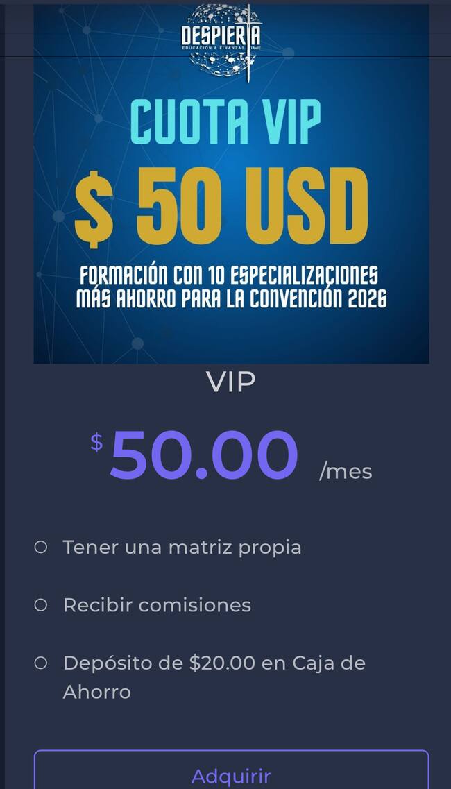 En esta “plataforma de educación” ofrecen clases de coaching, inteligencia emocional, espiritual y financiera por el que las personas deben pagar una membresía de entre 30 Y 50 dólares al mes, es decir, alrededor de $200.000 pesos al mes y para superar cada nivel tiene que llevar personas y así tener ganancias de hasta 17% mensual.