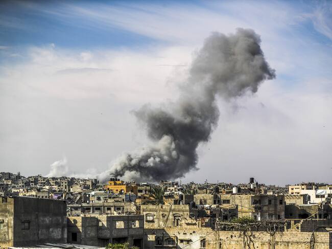 Nube de humo tras ataque israelí en la Franja de Gaza. FOTO: Mahmoud Issa/Anadolu via Getty Images / Anadolu