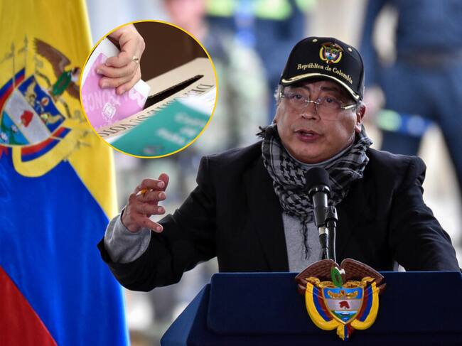 Presidente de la República, Gustavo Petro, e imagen de consulta popular. Foto: Colprensa - Cristian Bayona / Archivo