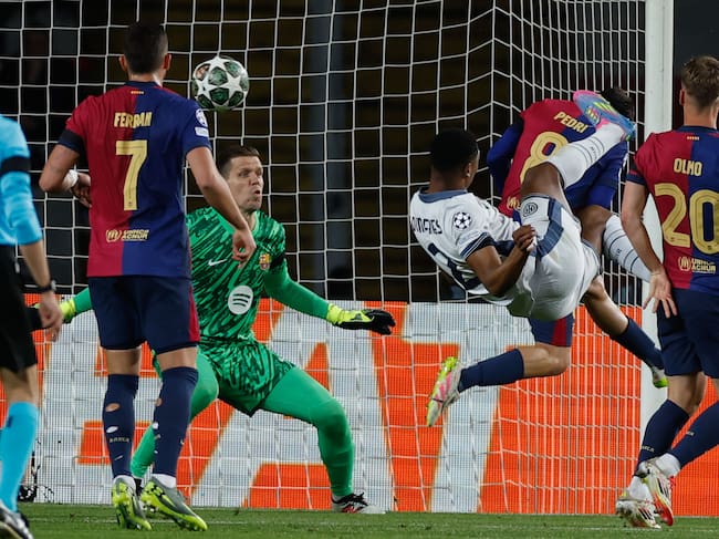 Tras el cobro del tiro de esquina y un cabezazo en el área, el lateral izquierdo del intercon una acrobacia inexplicable, marcó el segundo gol del Inter.