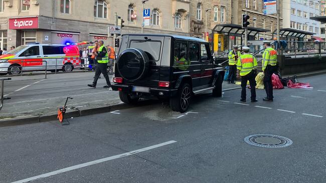 Mercedes clase G que atropello varias personas en Stuttgart, Alemania. FOTO: Marco Krefting/picture alliance via Getty Images / picture alliance