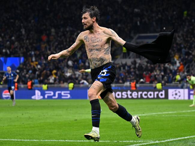 Francesco Acerbi del Inter de Milán anota el empate de la serie 3-3 ante el FC Barcelona por Champions League. FOTO: Dan Mullan/Getty Images / Dan Mullan