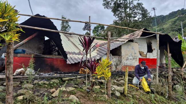 Casa incendiada en zona rural de Marmato (Caldas) donde murió una familia. Foto suministrada.