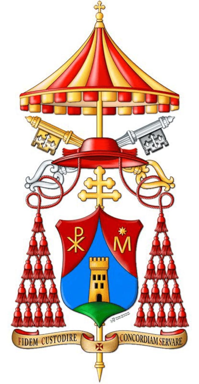 Esta heráldica eclesiástica inserta símbolos e insignias de carácter católico y religiosa. La Liturgia Papal indica que estos signos se dan “según los grados del orden sagrado, de la jurisdicción y de la dignidad”.