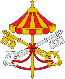 Durante el periodo de Sede Vacante, la corona del papa es reemplazada por la sombrilla semiabierta, una de las insignias de las basílicas menores (algunas iglesias), que viene acompañada de las dos llaves, una plateada y otra dorada, entrelazadas por un cordón rojo.