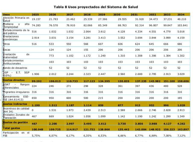 Según el concepto fiscal de esta cartera, los gastos totales del sistema de salud, incluidos los cambios que traería con la reforma, son de $ 100 billones para 2025.