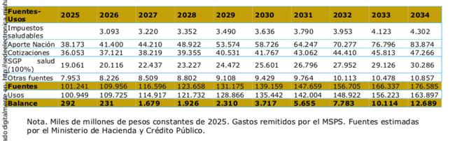 Según el documento, el costo del funcionamiento del sistema de salud colombiano para 2025, si se aprueba la reforma, sería de 100 billones de pesos.