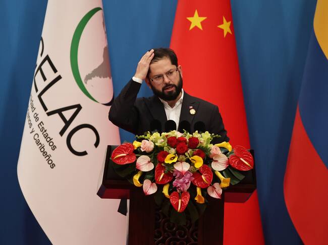 Presidente chileno Gabriel Boric durante la ceremonia de la IV Reunión Ministerial del foro China-CELAC. FOTO: EFE/EPA/ANDRES MARTINEZ CASARES / ANDRES MARTINEZ CASARES (EFE)