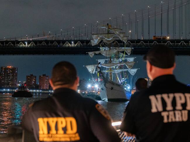 Integrantes del departamento de Policía de Nueva York observan el buque. Foto: EFE/ Angel Colmenares / Angel Colmenares (EFE)