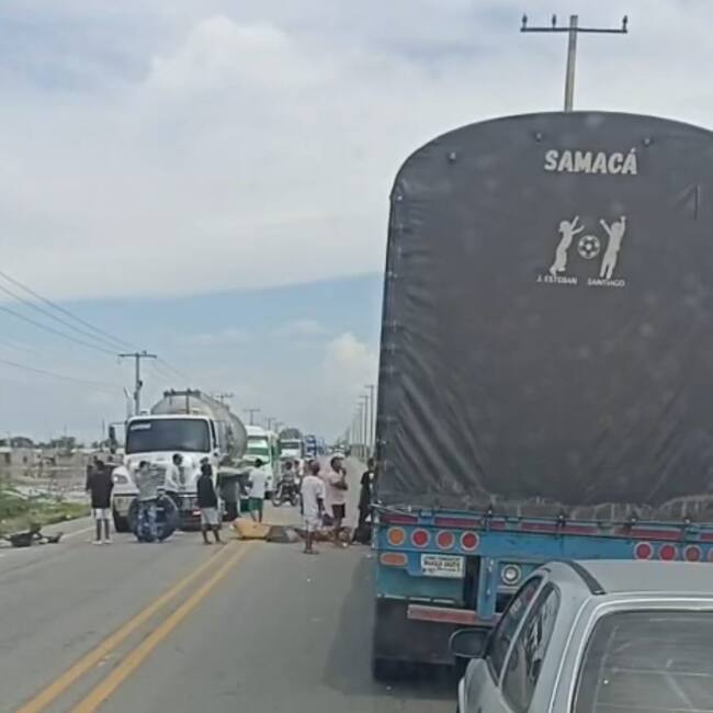 En la vía que comunica a Ciénaga con Barranquilla, a la altura del corregimiento de Tasajera, municipio de Puebloviejo (Magdalena), un grupo de personas exigía dinero a los vehículos para permitirles el paso.