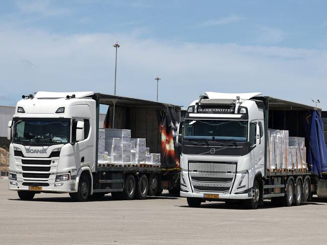 Camiones de ayuda humanitaria a la espera de entrar a la Franja de Gaza. FOTO: JACK GUEZ/AFP via Getty Images / JACK GUEZ
