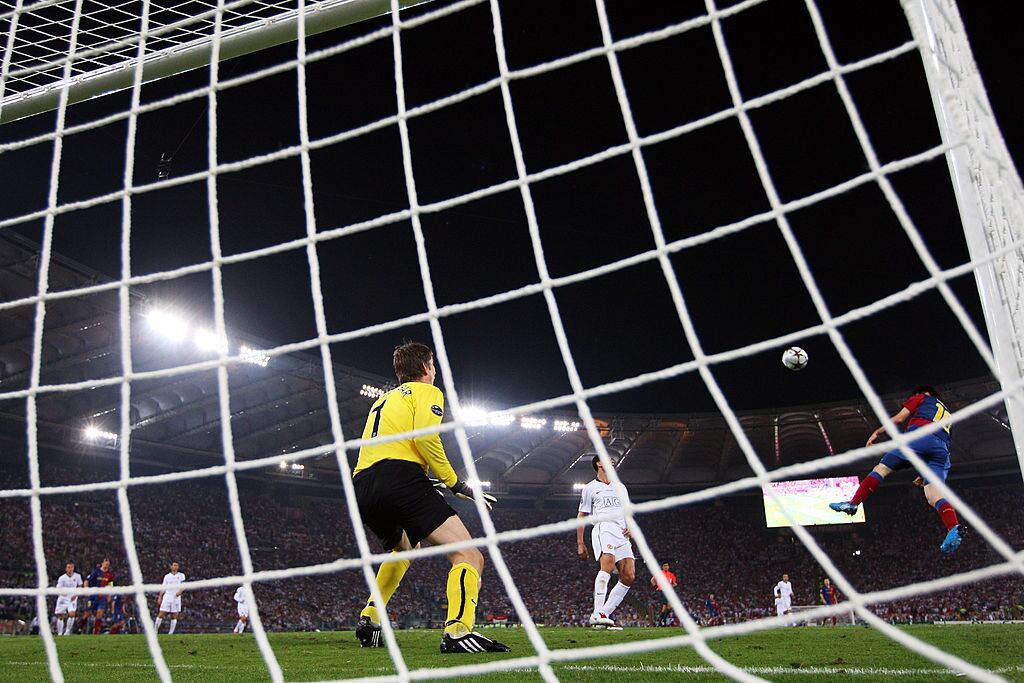 Messi, uno de los jugadores de menor estatura, anotó de cabeza colgando a Edwin van der Sar (que mide 1.97) tras un centro de larga distancia de Xavi Hernández. El gol, entre otras cosas, también fue relevante por la mítica celebración del argentino besando su guayo luego de anotar.