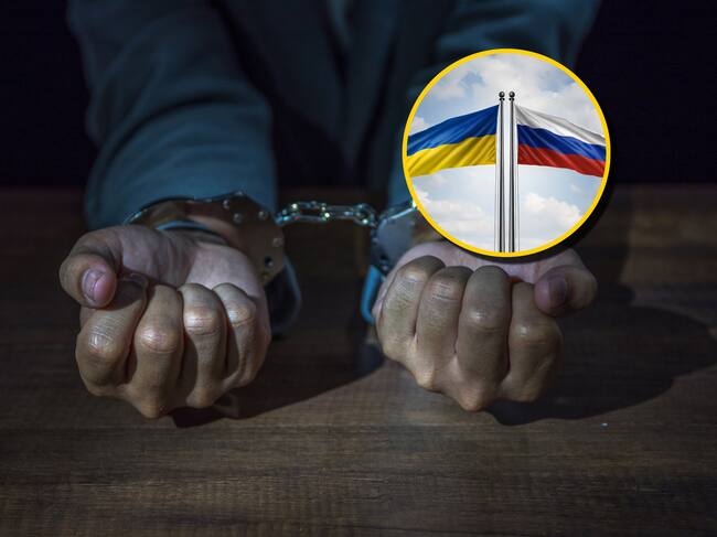 Rferencia de prisionero y banderas de Rusia y Ucrania. Foto: boonchai wedmakawand y wildpixel vía Getty Images.