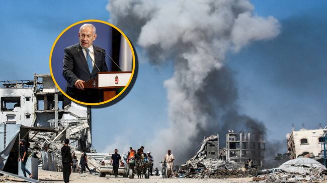 Benjamin Netanyahu y Gaza. Foto: Janos Kummer y BASHAR TALEB/AFP via Getty Images.