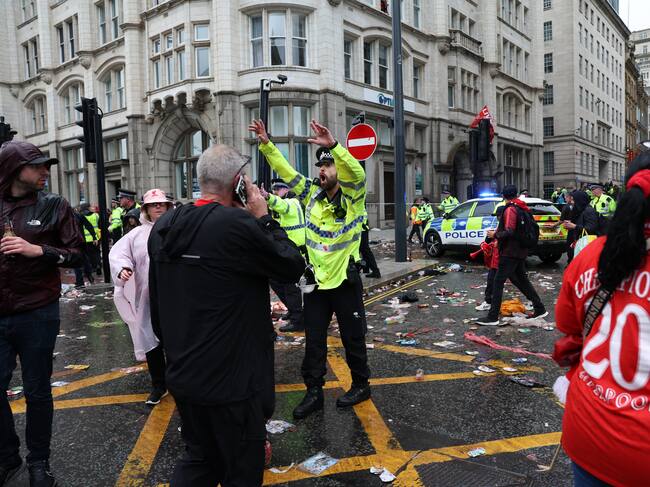 Según la Policía de Merseyside un hombre fue detenido tras chocar con varios peatones en el centro de Liverpool (noroeste de Inglaterra) durante las celebraciones del campeonato de liga del equipo de fútbol homónimo de la ciudad.