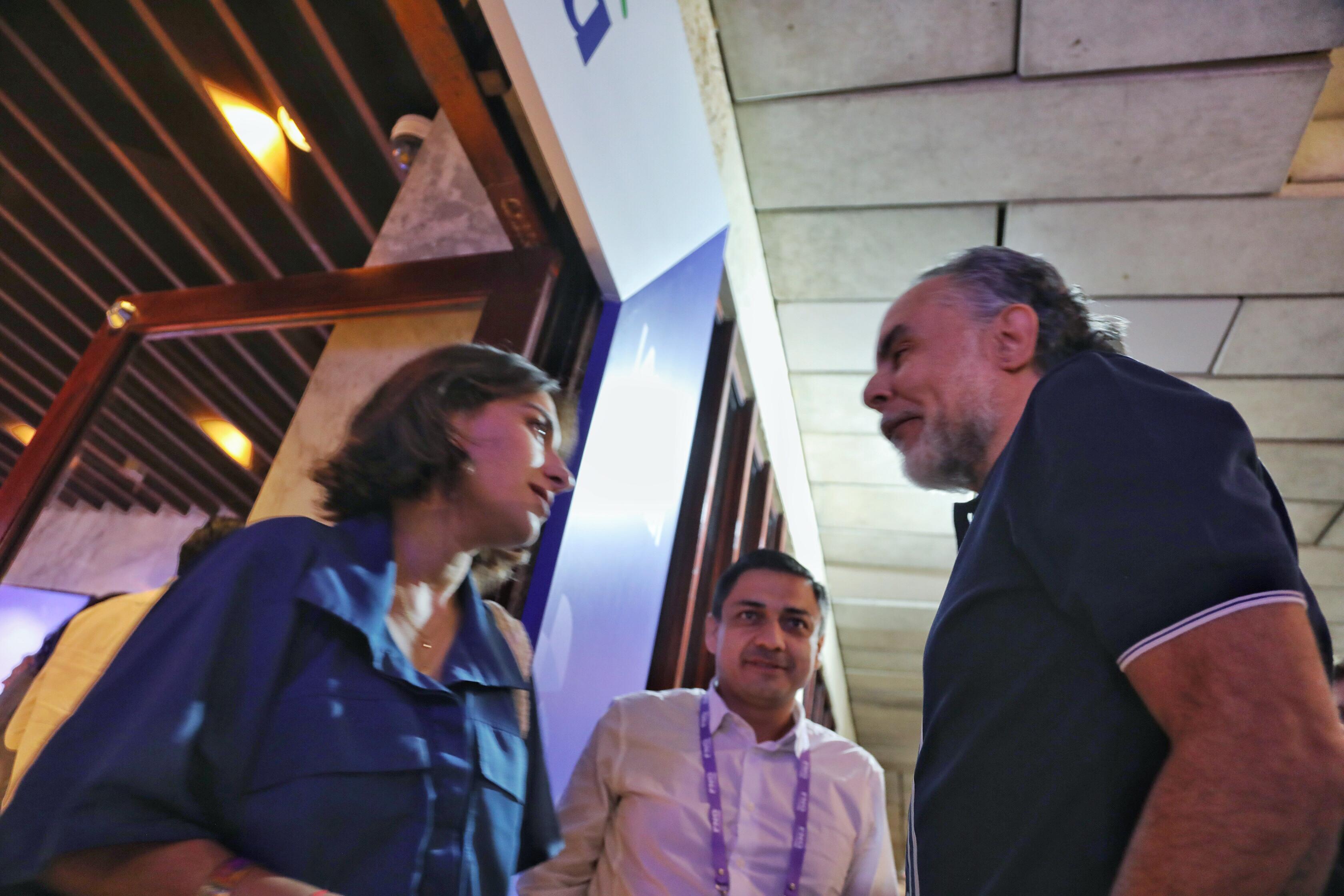 La canciller Sarabia y el ministro Benedetti tuvieron un cercano encuentro en la convención bancaria.