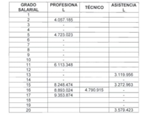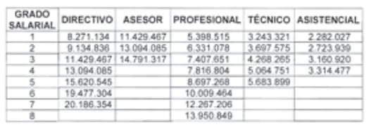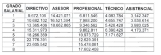 Escala salarial de empleados incorporados