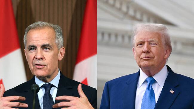 Primer ministro de Canadá, Mark Carney. FOTO: DAVE CHAN/AFP via Getty Images. //Presidente de Estados Unidos, Donald Trump. FOTO: SAUL LOEB/AFP via Getty Images