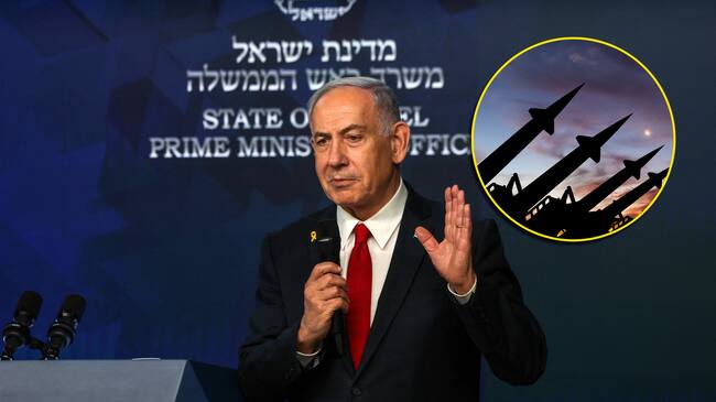 Benjamín Netanyahu y referencia de armas. Foto: RONEN ZVULUN/POOL/AFP y Anton Petru via Getty Images