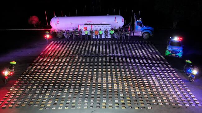 El Ejército halló una caleta oculta en la quinta rueda del vehículo, en el sistema de enganche entre el cabezote y el tráiler, donde se encontraban aproximadamente 1500 kilogramos de clorhidrato de cocaína.