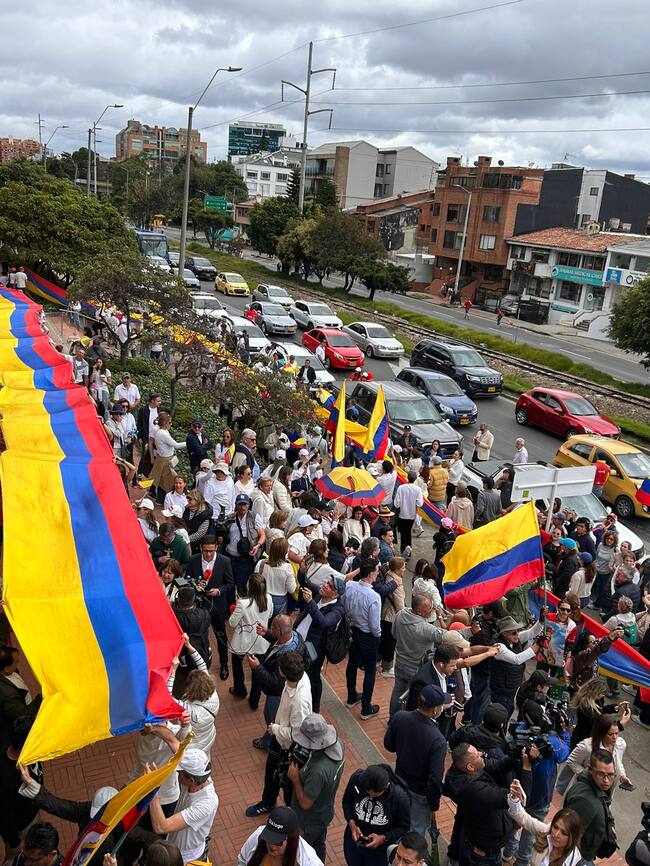 Decenas de ciudadanos salieron a las calles a manifestarse en apoyo al precandidato presidencial Miguel Uribe Turbay luego de que fuera víctima de un atentado con arma de fuego en Fontibón, occidente de Bogotá.