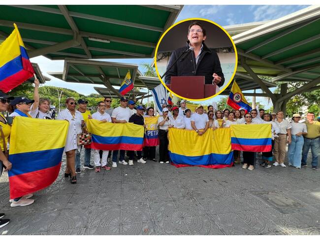 Comunidad en Barranquilla realizó plantón en rechazo al atentado contra Miguel Uribe. Foto: tomada del perfil de X @PaolaHolguin/Colprensa.