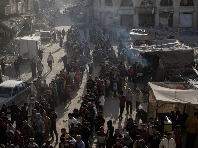 Reparto de ayuda humanitaria en Jan Yunis, en el sur de Gaza. Foto: tomada de EFE/EPA/Hatham Imad.