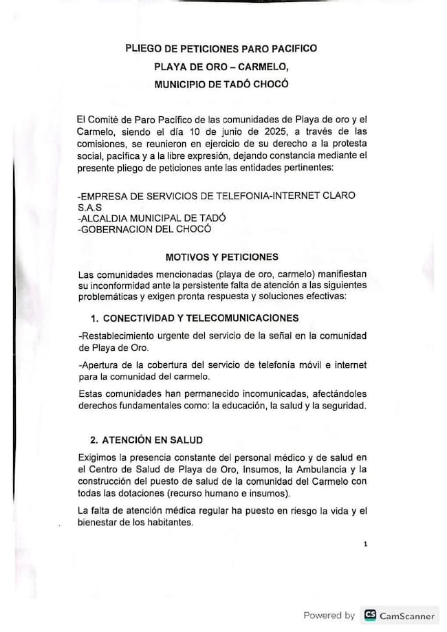 El Comité de Paro Pacífico, de las comunidades de Playa de Oro y de el Carmelo, se reunieron creando el pliego de peticiones ante diferentes entidades.