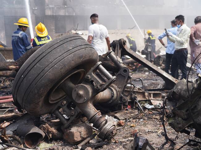 Restos del avión accidentado en India. FOTO: EFE/EPA/SIDDHARAJ SOLANKI / SIDDHARAJ SOLANKI (EFE)