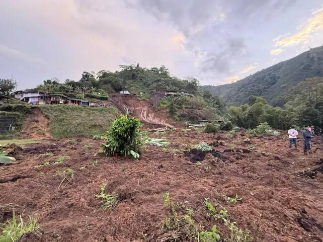 Deslizamiento en la vereda Los Cuervos en Villamaría, Caldas, el pasado 20 de febrero. Foto: Gobernación de Caldas.